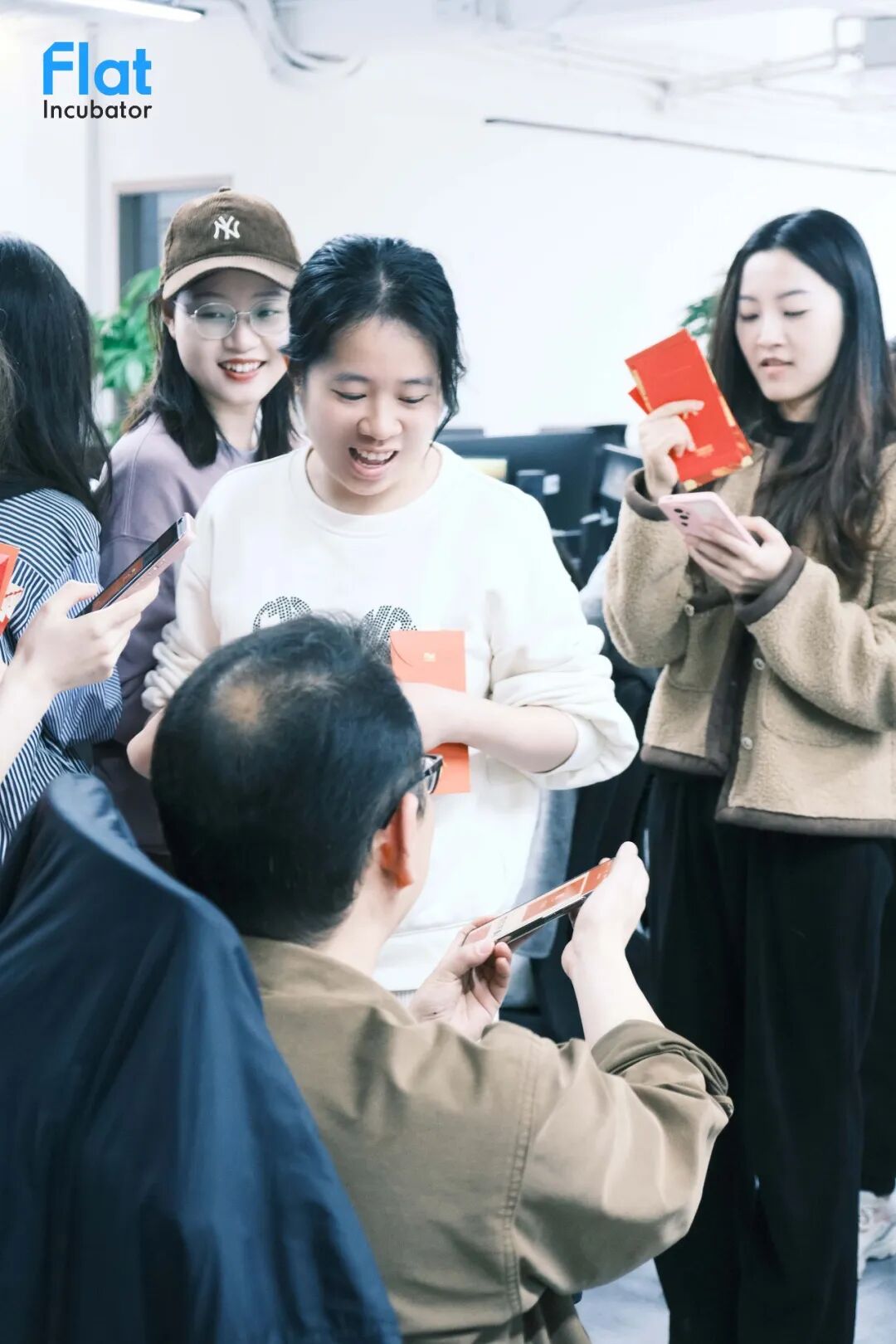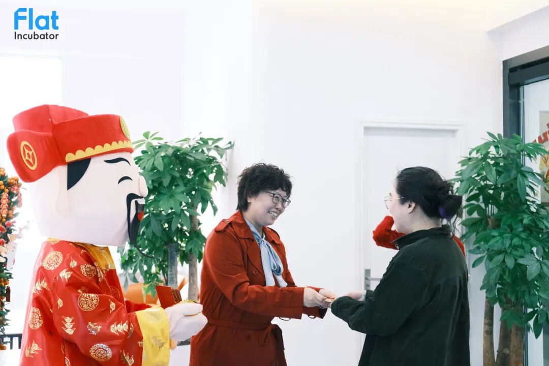 开工日一大早,Flat Incubator的BOSS和自带BGM的男(财)人(神)便在办公室门口等待着大家的到来,伴随着喜庆的Music给大家发开工利是啦!