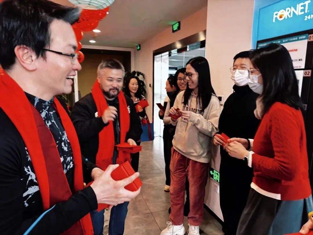 洋葱集团创始人李淙、洋葱集团合伙人何珊以及高管们也为大家准备了丰厚的开工红包,在声声“新年快乐”中互道祝福,期盼大家新年万事大吉,铆足干劲向前冲。