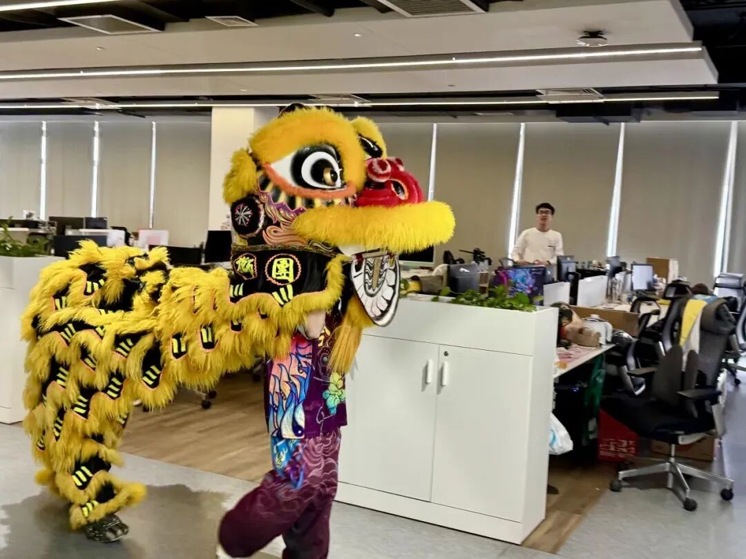 还将醒狮请来了办公室,为开工助兴,为大家送福,摸摸龙狮头“万事不用愁”,摸摸龙狮尾“由头顺到尾”。
