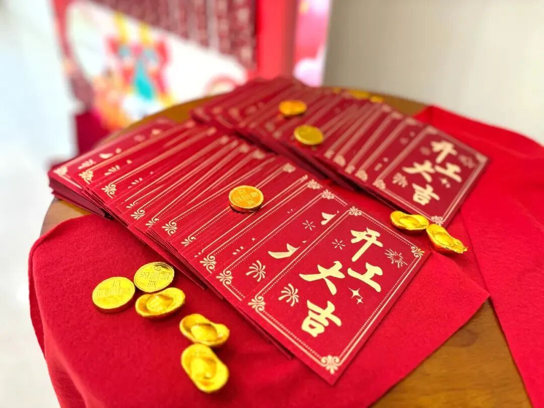 活动现场不仅有招财组合与大家合影,共同迎接新一年的好运与财富,还在活动现场设置了一面红包墙,红包一拆,好运到来。