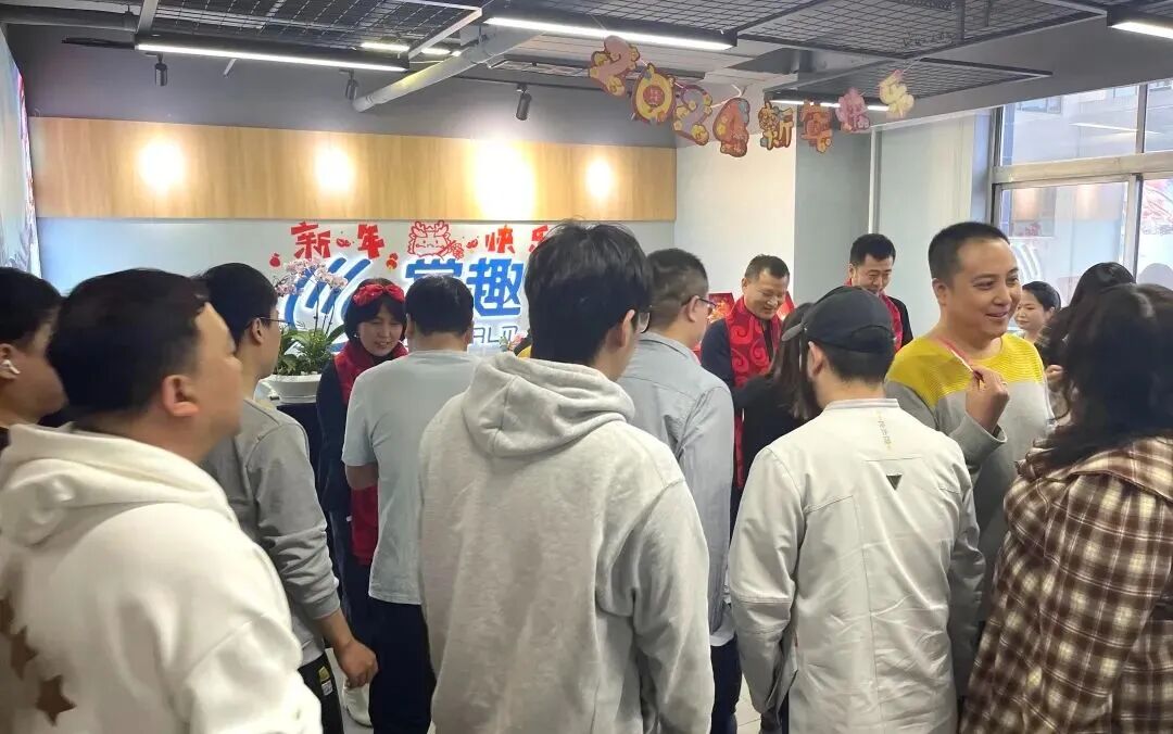 上海办公区同琶洲总部一样,在欢声笑语中迎来新一年的开工仪式,更有有趣的开年游戏将好运传递。
