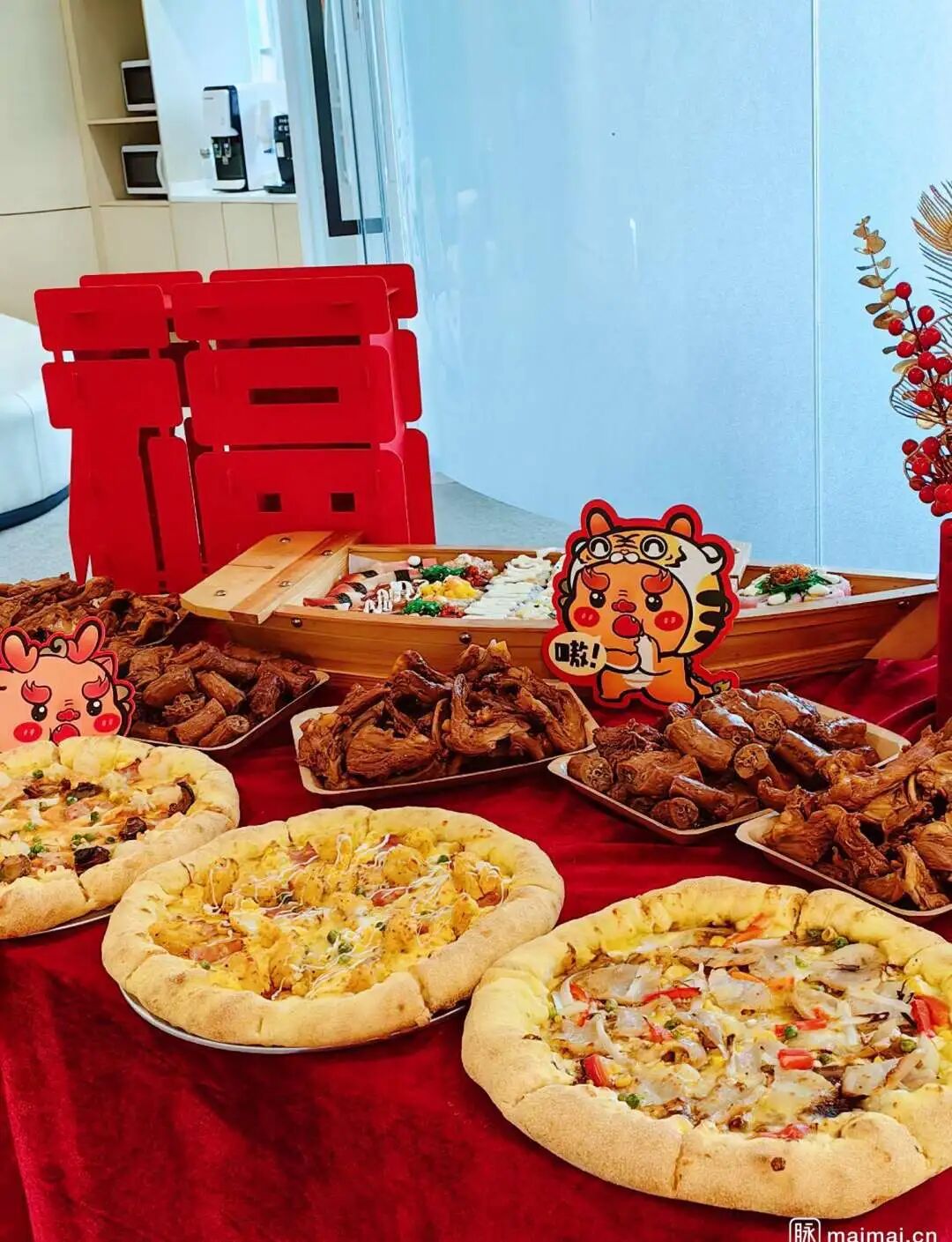 大年初九,新篇开启!诸云科技不仅为小伙伴们准备了开工大红包,还有丰富的下午茶,各式各样的精致点心、卤味、披萨......俘获大家的味蕾。
