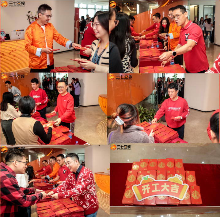 新年伊始,福气满盈,开工首日,三七互娱集团高管李总、曾总、胡总、杨总、徐总,齐齐亮相广州办公室,为大家送上开工红包,寓意五福临门,好运连连~