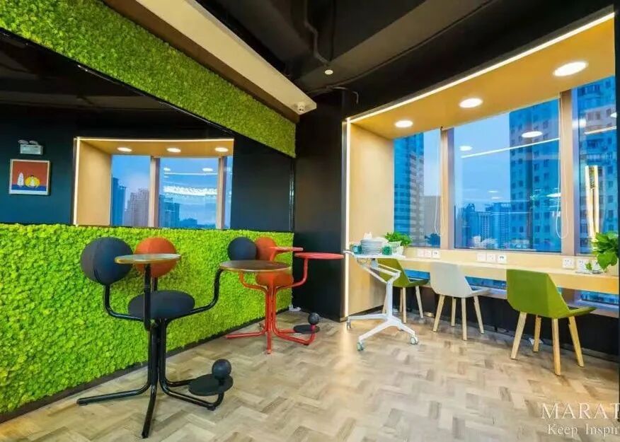 前面所谈到的打造休闲区的各种思路本身都是在展现企业的人性化关怀,但还会有不少企业通过一些巧思不仅给员工带来舒适感、活力,还能让其成为企业文化的载体。