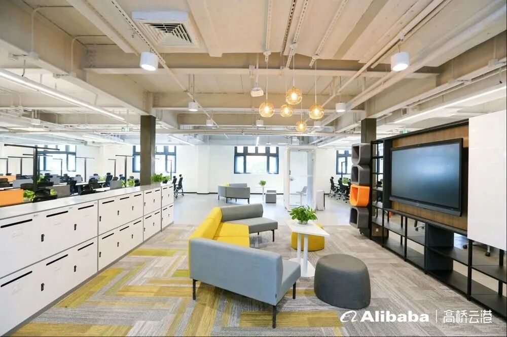 阿里还在休闲区配备电子屏幕,随时还能变身一个临时会议场所,或小型工作交流点。
