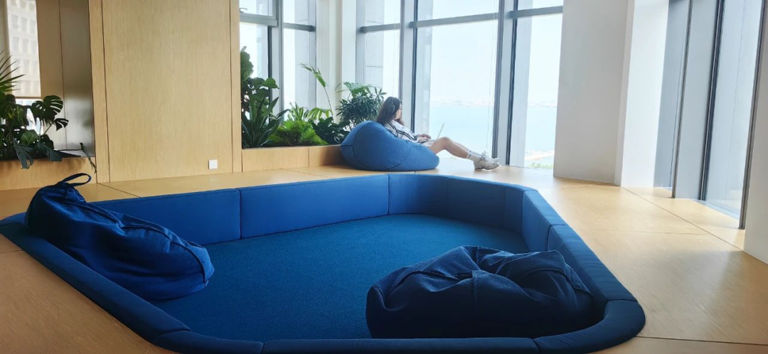 一个舒适的公共休闲区,就像是公司里的充电站,在这里短暂休息,是为了继续前行。