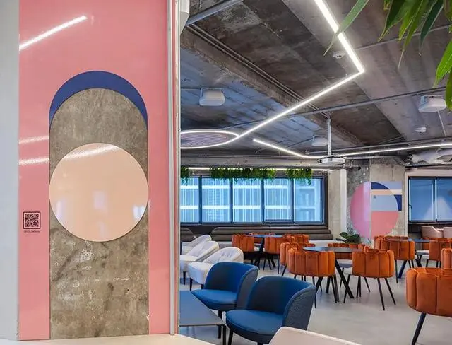 作为企业集中休闲娱乐的空间,很多企业会区别于办公区的克制,用丰富的色彩,赋予办公空间生机和活力,更能刺激灵感的诞生。
