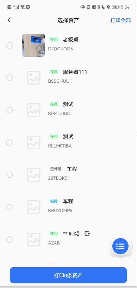 只要电脑或手机APP连接标签打印机后,选择对应的标签模板和耗材类型,点击打印即可批量打印资产标签。