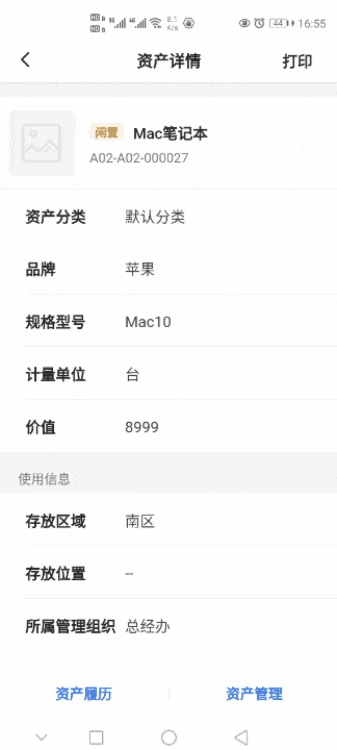 直接选择对应的资产或扫描资产标签上的二维码,进入资产管理页面,提交相应的申请即可。