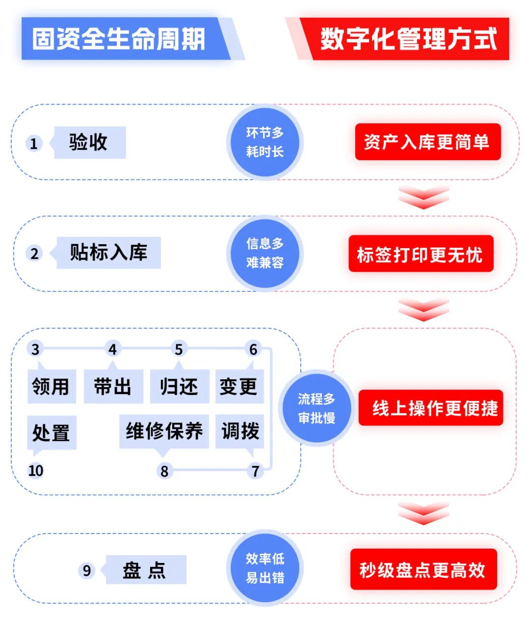 引入数字化管理方式之后,固资全生命周期的环节基本都可以在线上解决,大大提升了管理效率。