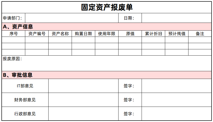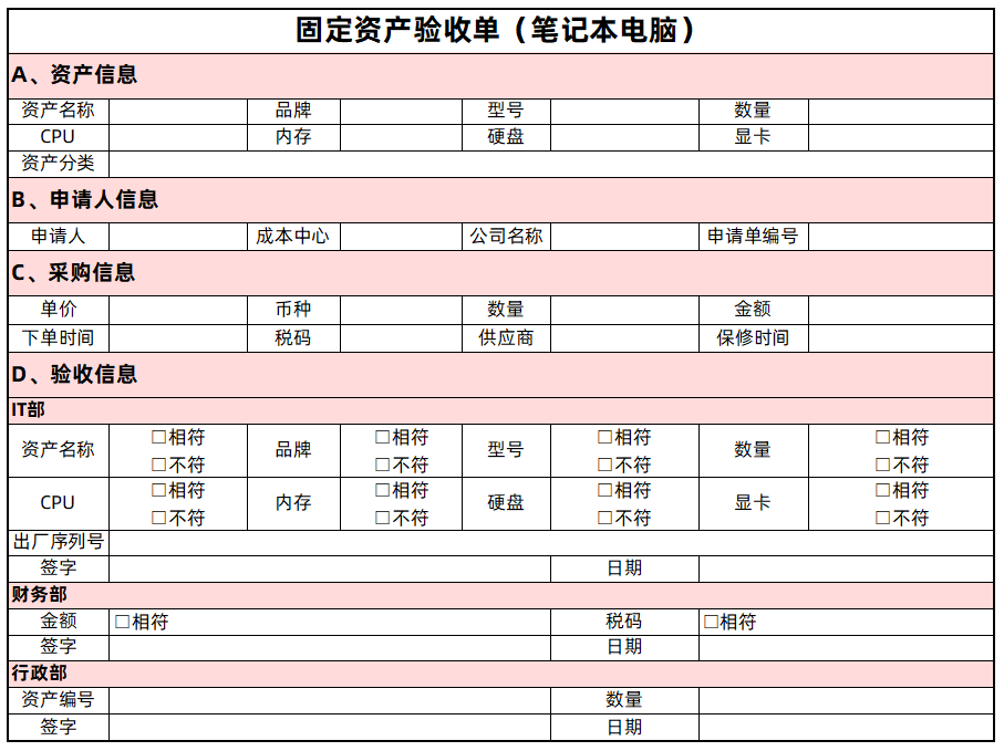 下面就针对固资全生命周期的每个环节,一一介绍传统管理方式中大家通常的操作步骤及常用表格模板。