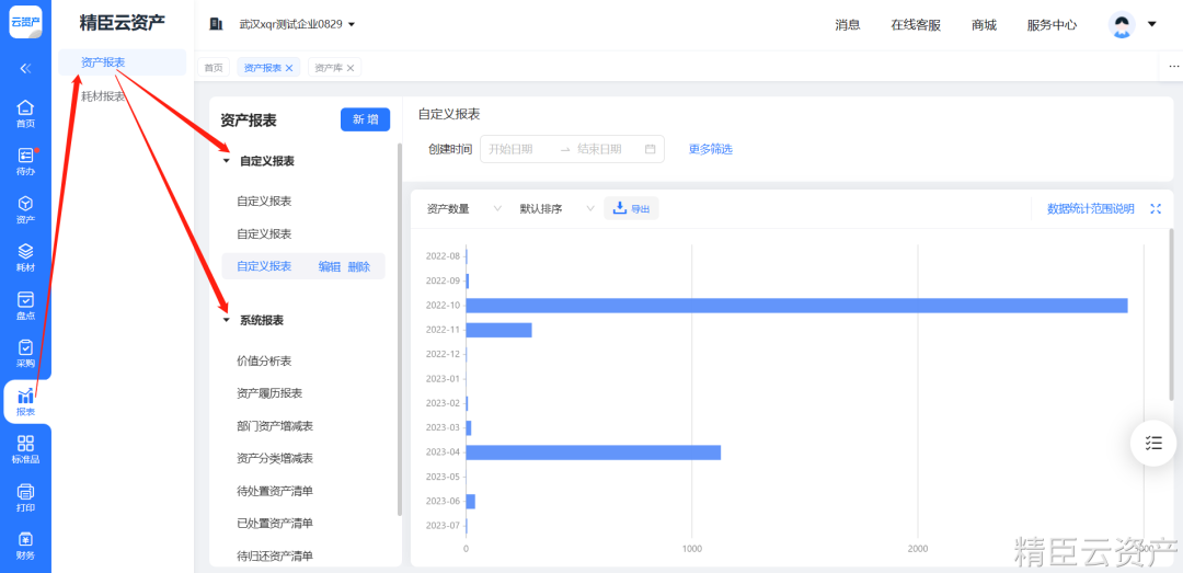 系统预设有资产履历表、待处置资产清单、待归还资产清单等17种常用数据报表,还能根据需要生成自定义报表,同时生成条形图、柱状图、折线图等可视化图表,行政的资产分析提供数据和图表支持。