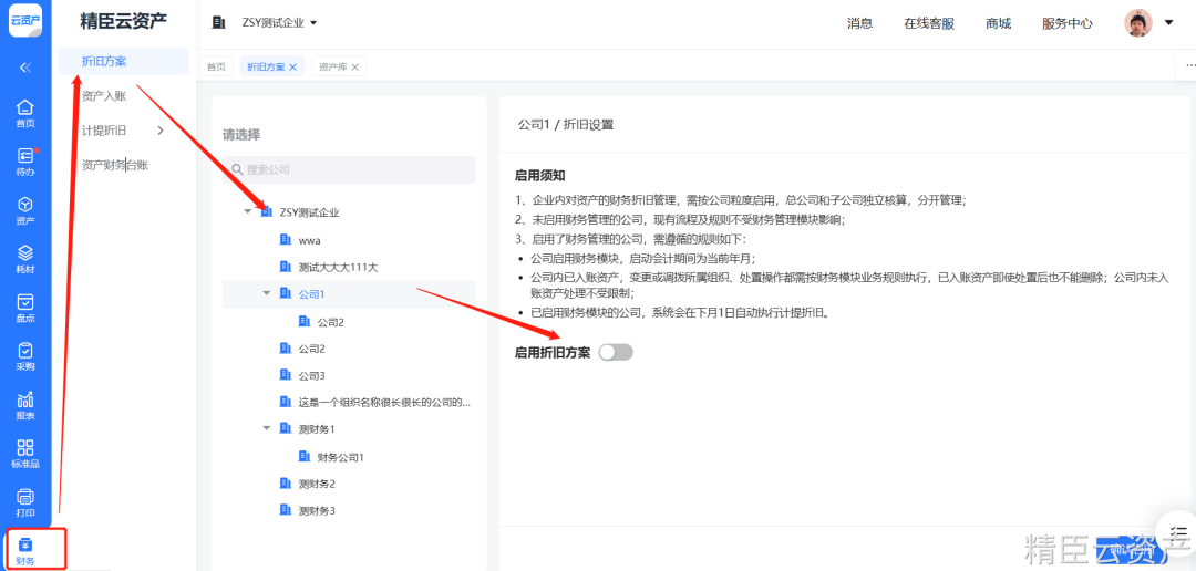 资产的折旧由于涉及企业成本,所以更要谨慎对待。想要精准计算,可以借助管理系统中的“折旧方案”功能,开启后系统将根据年限自动完成资产折旧,省时省力。