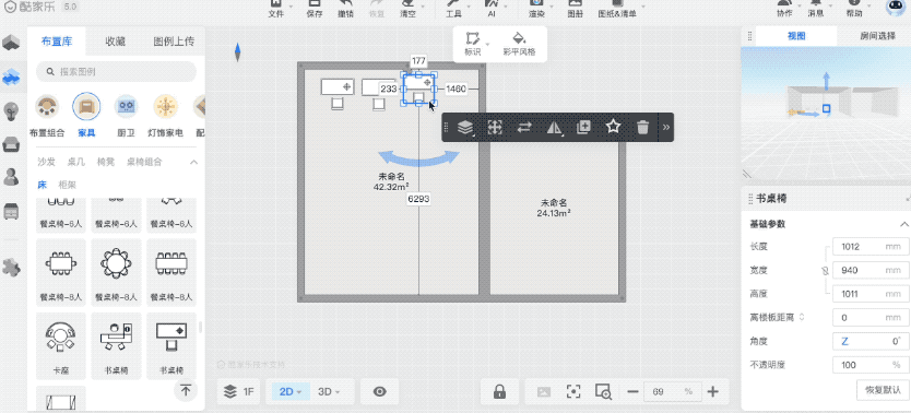 根据你的墙体绘制,它可以自动帮你计算此空间面积,可以一键修改墙体厚度、窗户类型等。还有基础的办公家具、办公用品元素可以选择,很好地平衡了视图的专业性与操作便捷性。