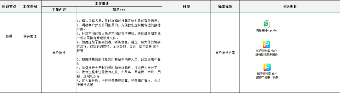 商务接待最讲究的是细节,接待规格的确定、接待过程中的礼仪……对接待人员来说都是一个考验,所以这个时候一份详尽的sop攻略显得更为重要。