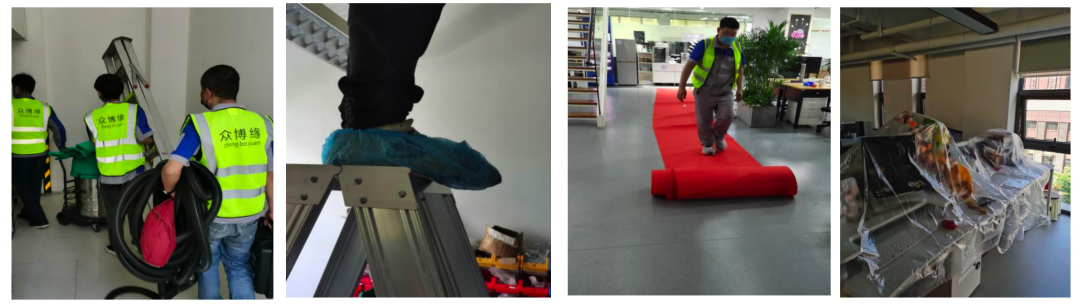 *专业服务商会做到:统一工服、带鞋套、铺设地毯、设备遮盖