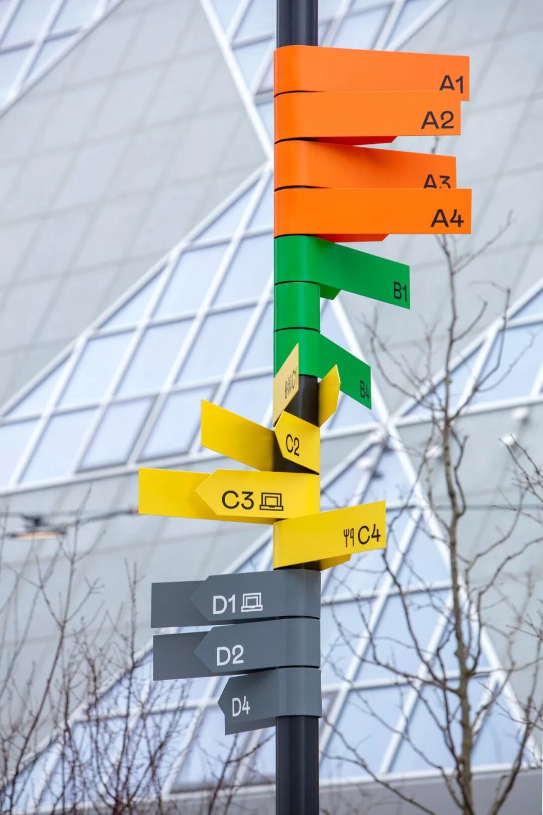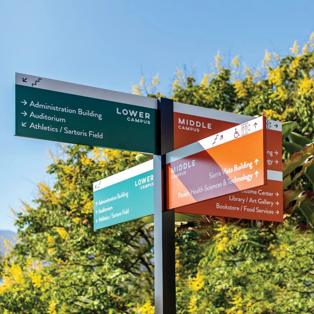 还可以将楼号变成“雕塑装置”,大大的伫立在入口处。彩色标识显得年轻有活力;金属标识沉稳有气质...