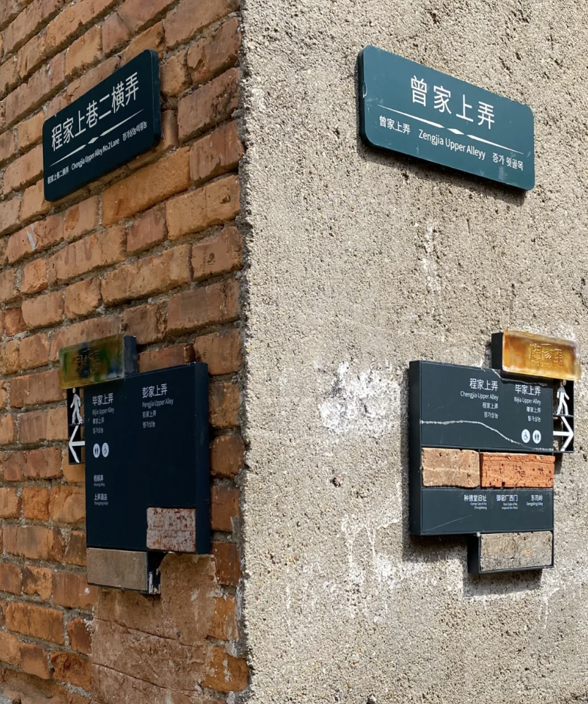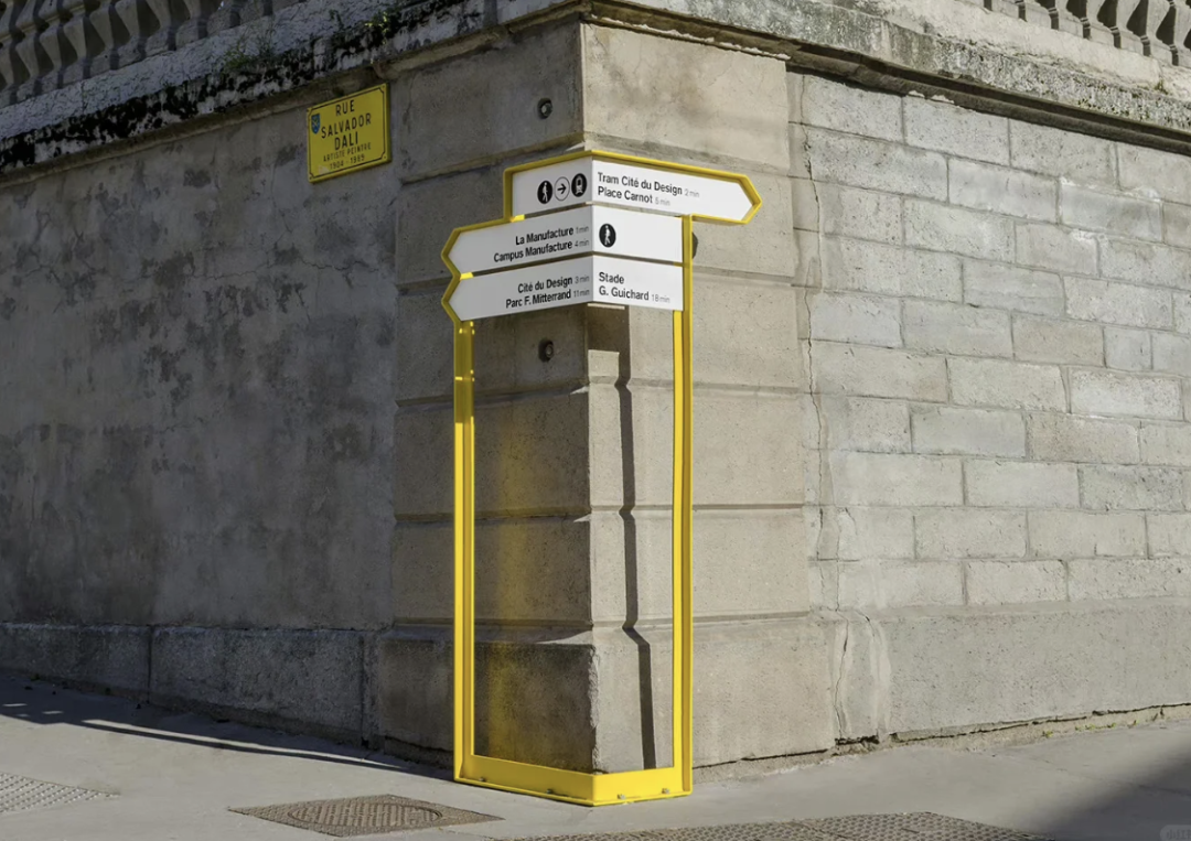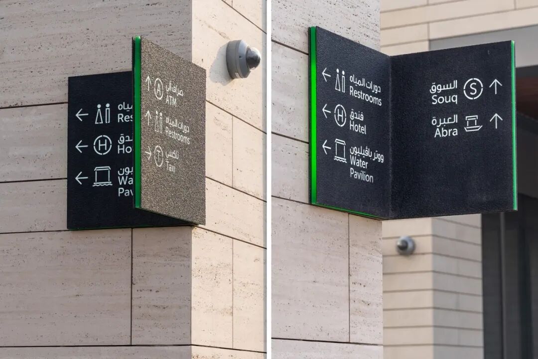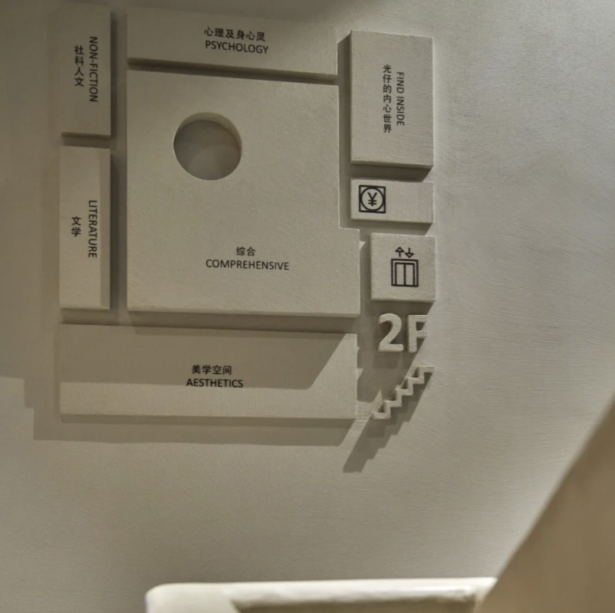 还可以使用小指示牌,沿着墙面延伸出去,这样不用转弯就能了解不同方向的内容。