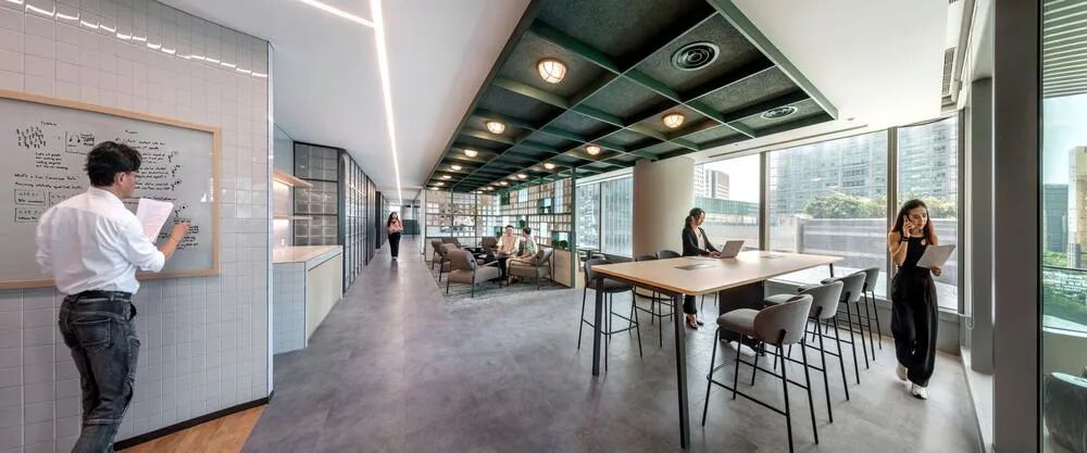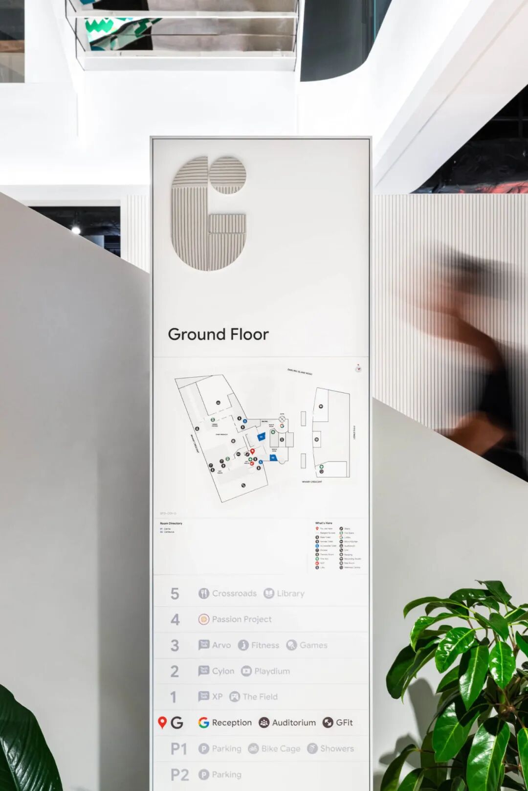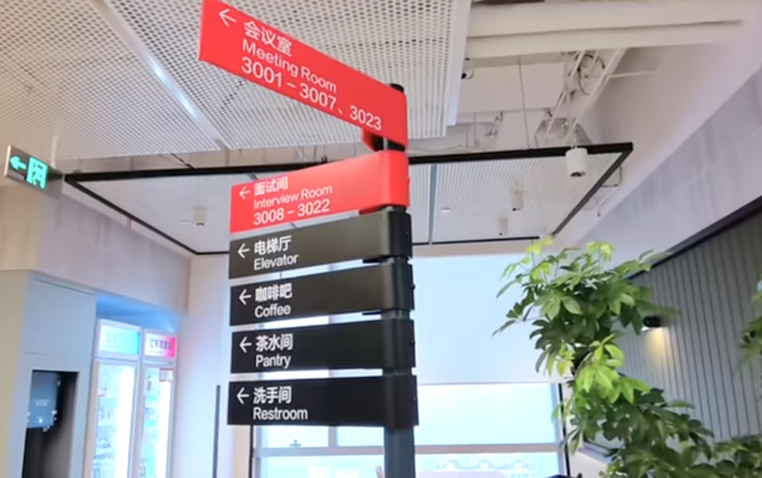 ① 楼层面积大空间多的情况下,可以合理增加空间总导览。比如小红书上海办公室在入门大厅处放置了路牌,即使是第一次进入也不会迷路。