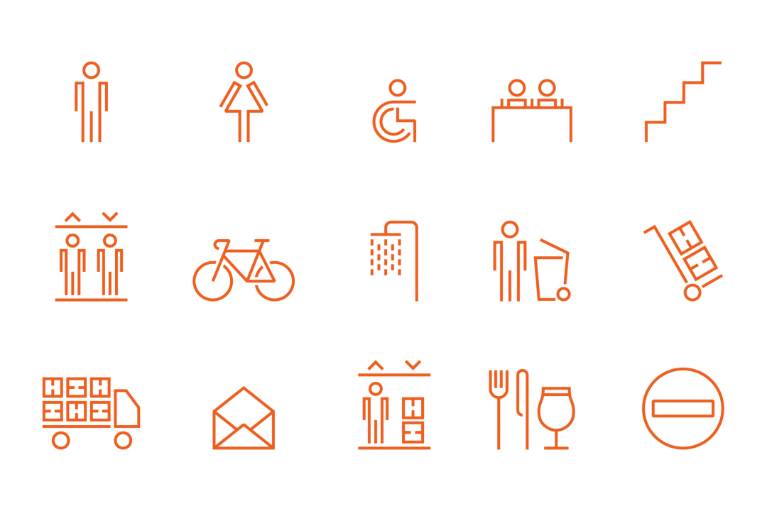 ②空间内的功能区域图标指引需要提前做设计,让不同图标具备整体性。比如⬇️