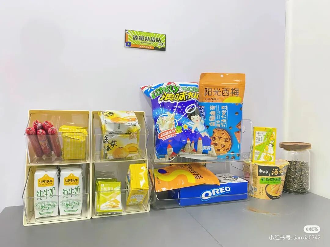 零食区则是员工补充能量,开心一刻的区域,行政除了准备丰富的零食外,还可以添加有活力的标语,给大家加油打气。