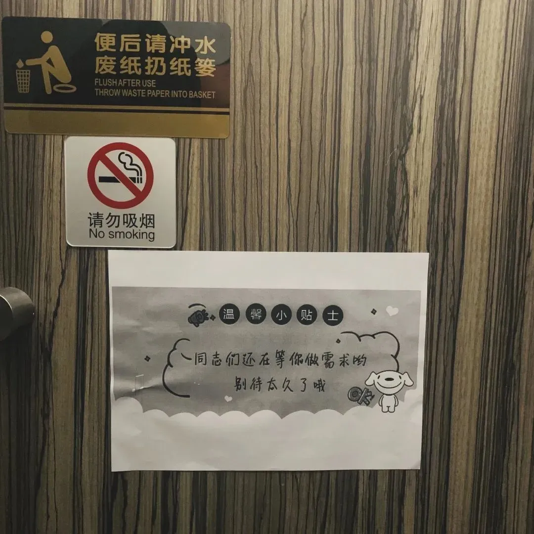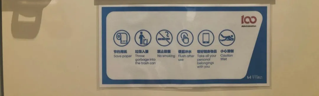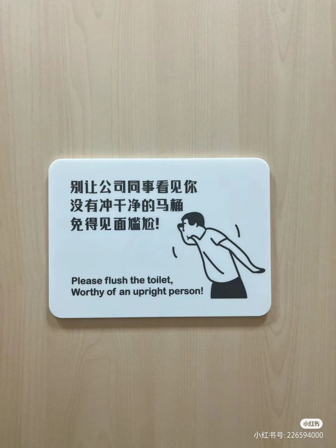 🌰③字节跳动卫生间使用提醒:“节约用纸、垃圾入篓、禁止吸烟、便后冲水、带好随身物品、小心滑倒”,言简意赅。