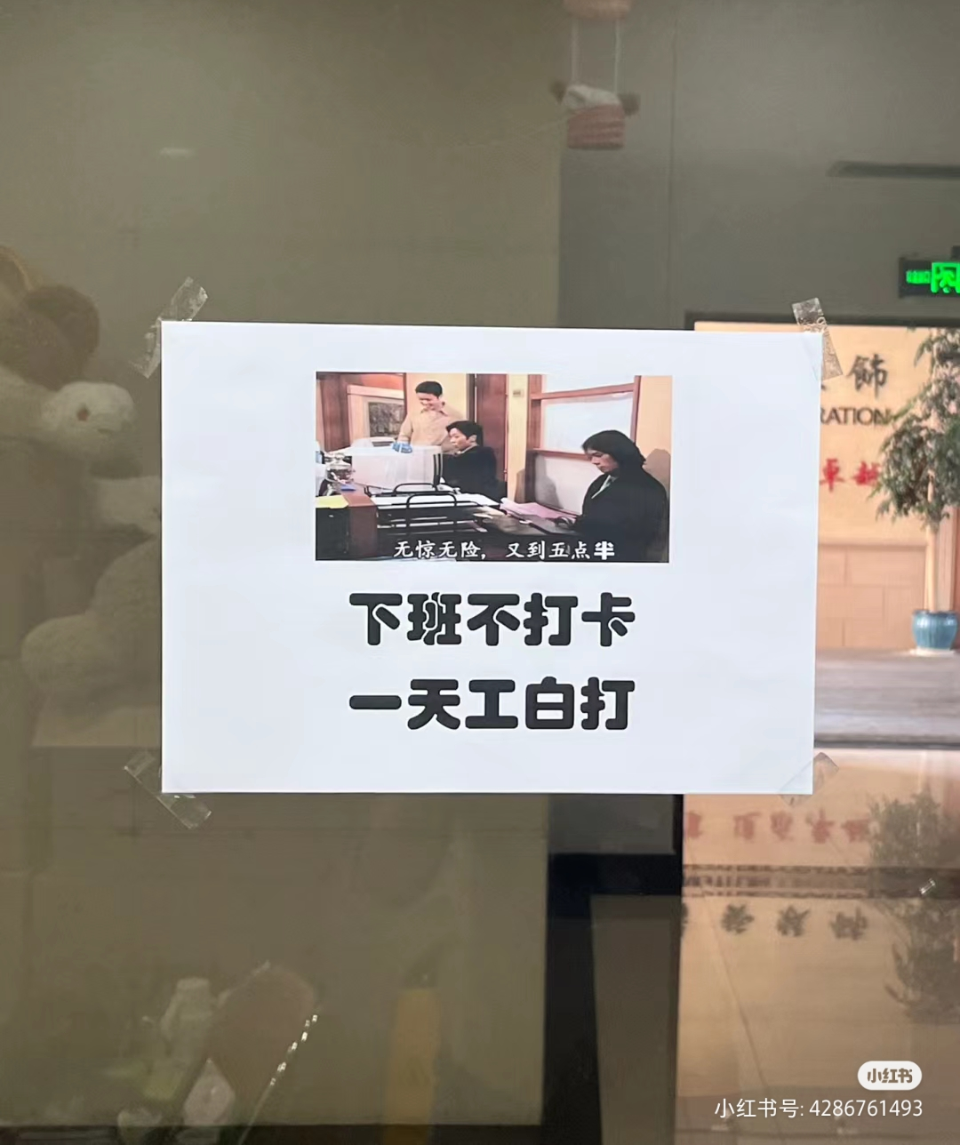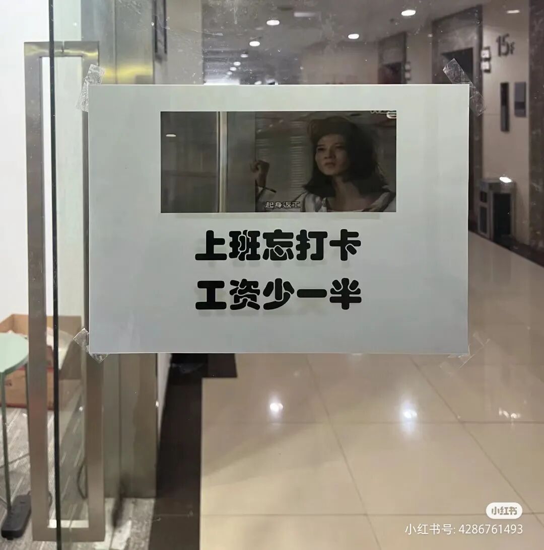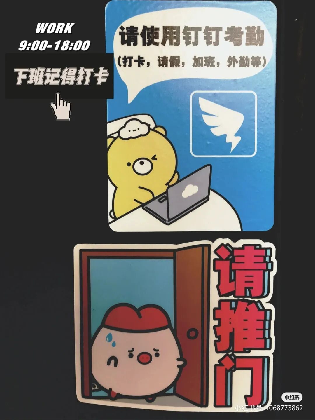当然文案也可以更加活泼一点,例如某公司打卡处标语: