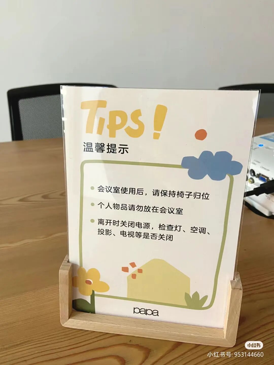papa婴童品牌公司也在会议室放置了温馨提示牌: