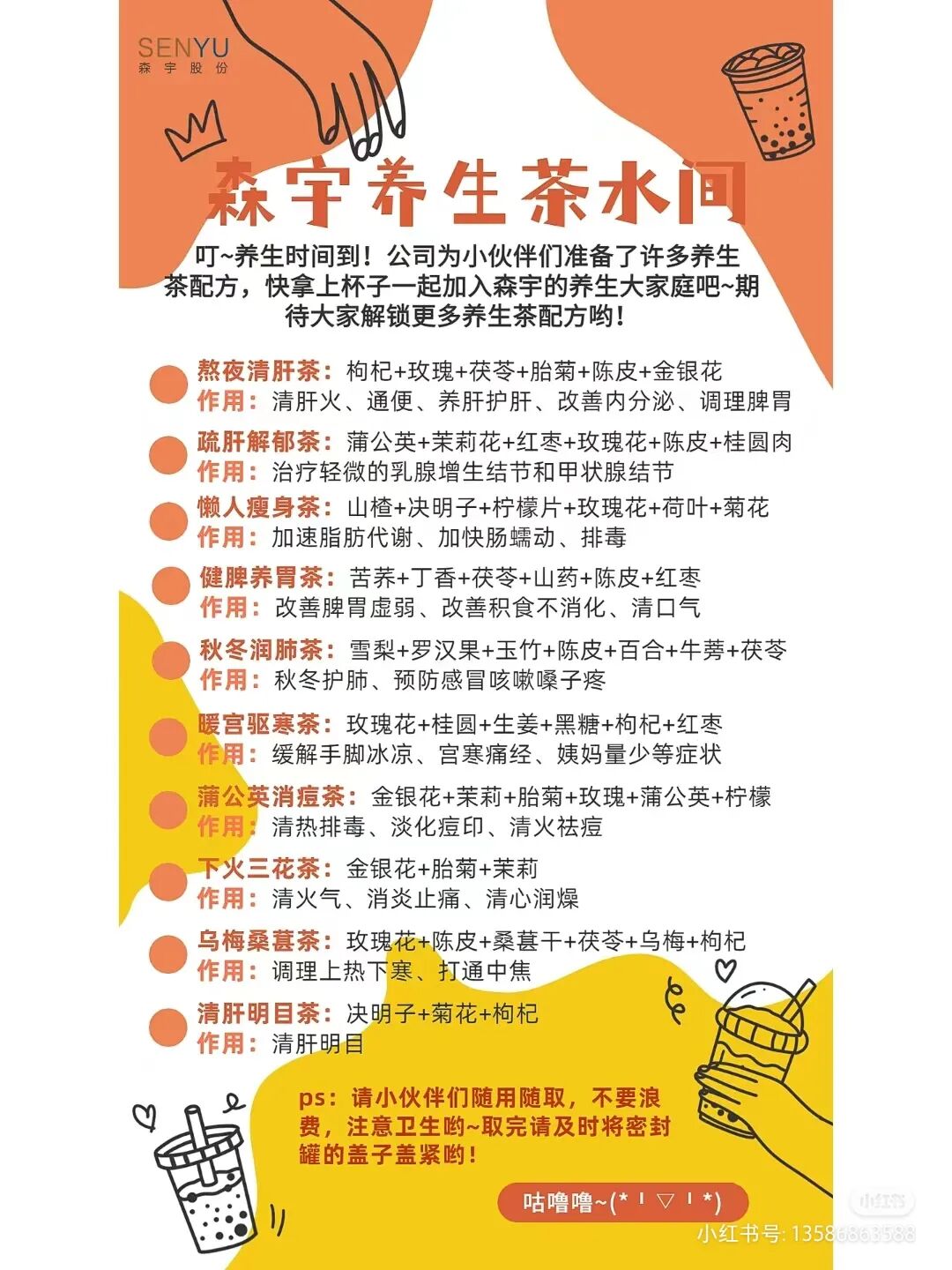 有的公司则选择了不少茶包,并贴心地粘贴了泡茶搭配小技巧: