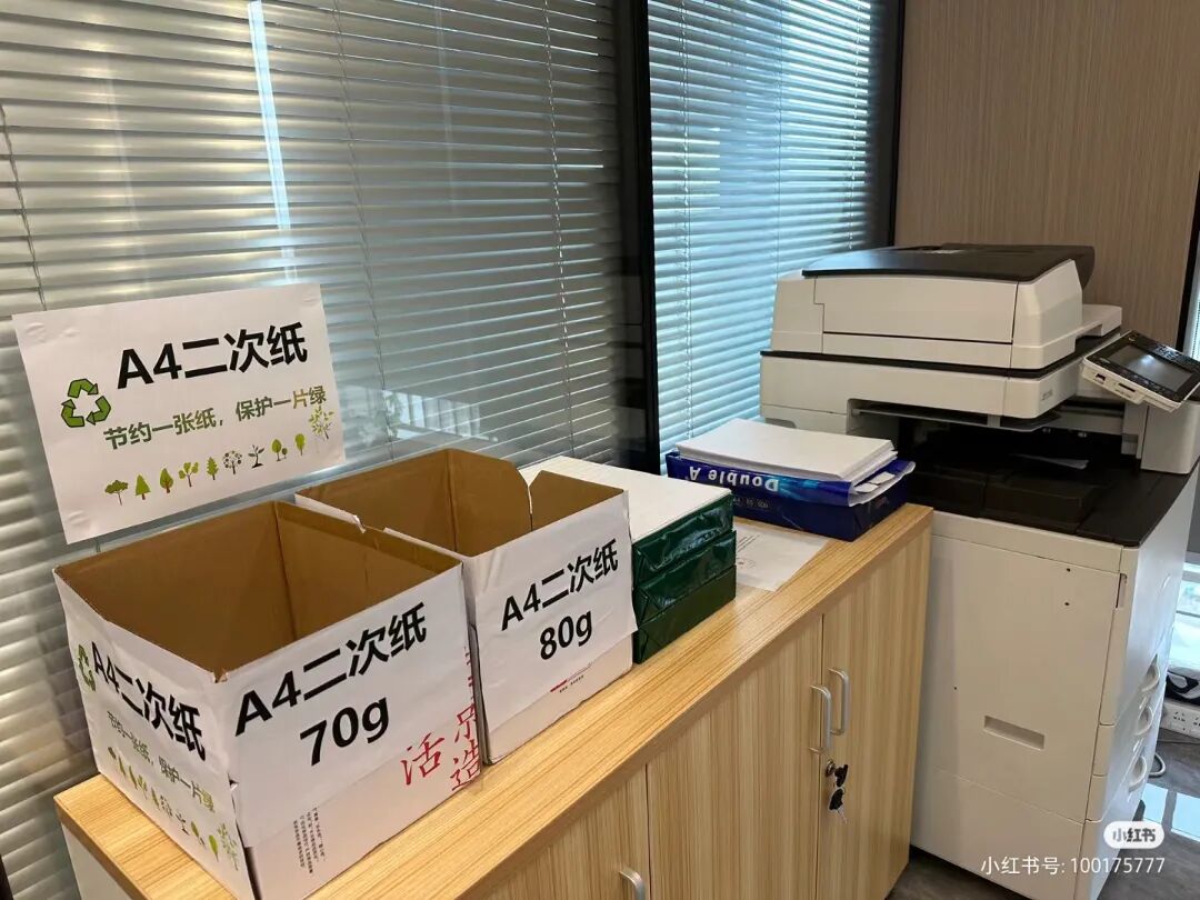 通常公司为了降本以及低碳,在打印机旁都会安排一些废纸回收区,并贴上相应的提示:“节约一张纸,保护一片绿”