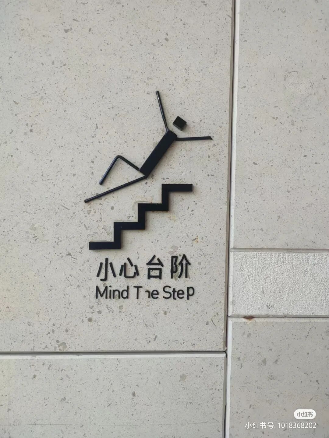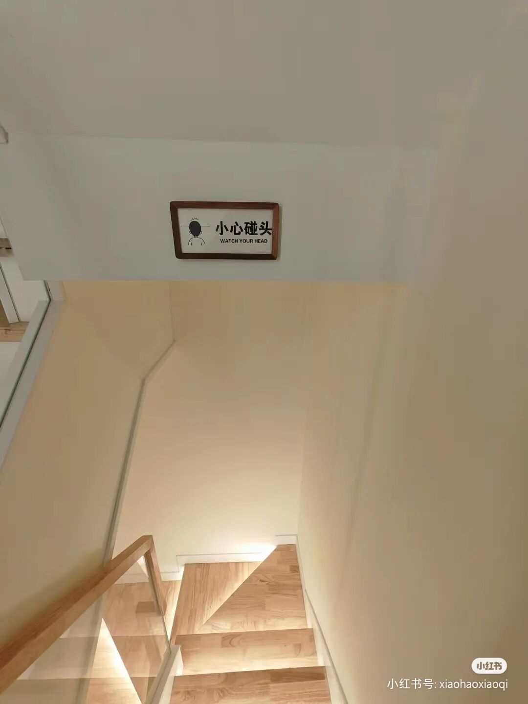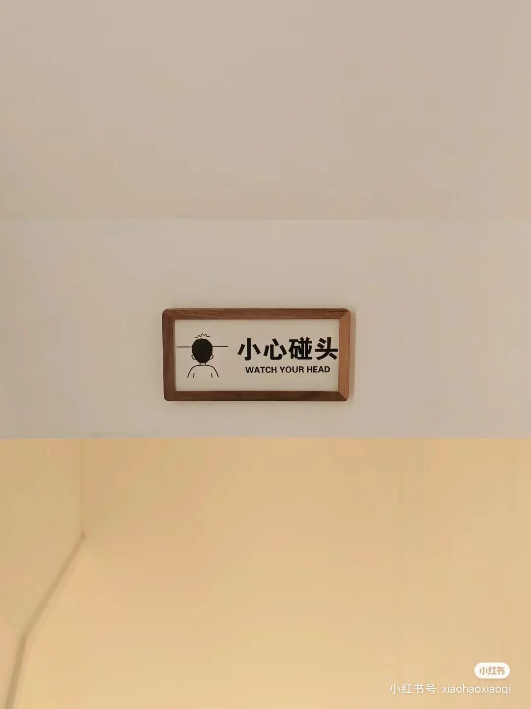 对于楼道较为矮小的位置,也可以标注小心碰头的标语: