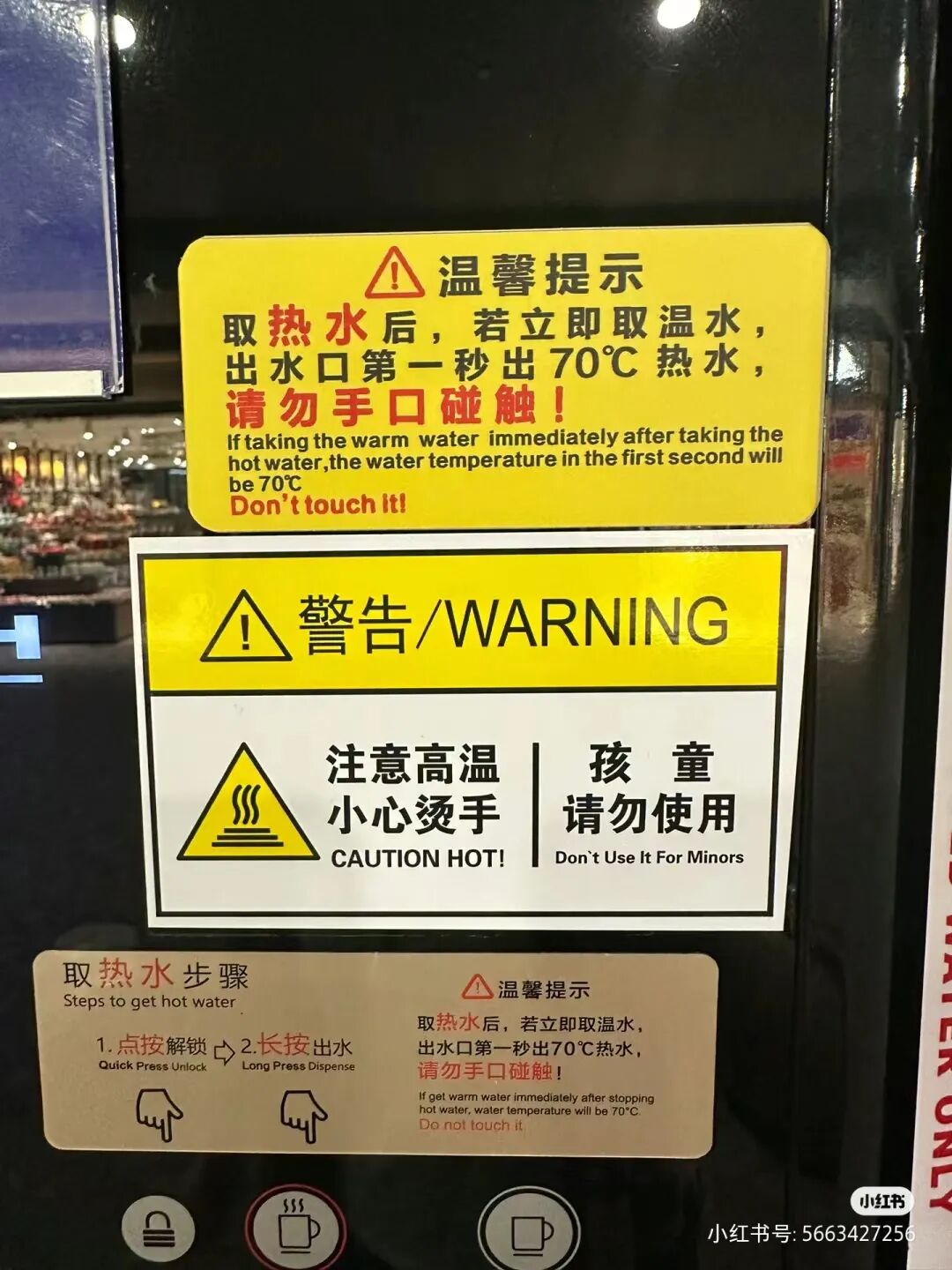 接水时特别需要提醒员工们注意高温,小心烫伤: