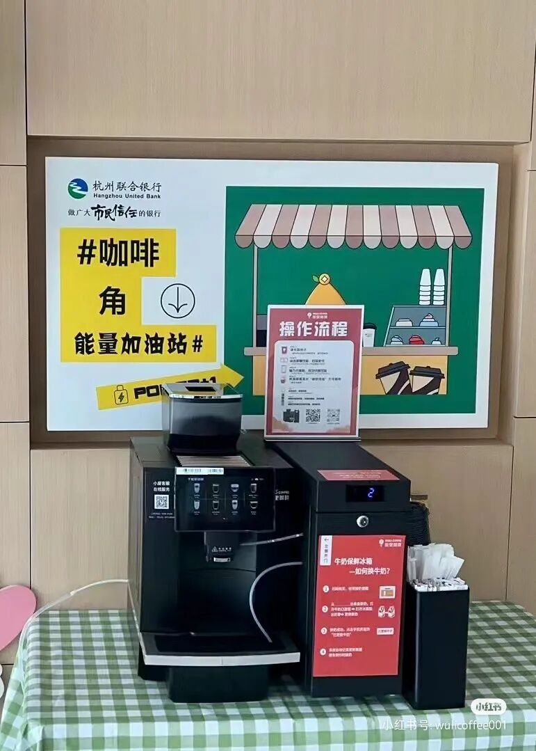 再例如杭州联合银行咖啡角“能量加油站”提示语“咖啡机操作流程”: