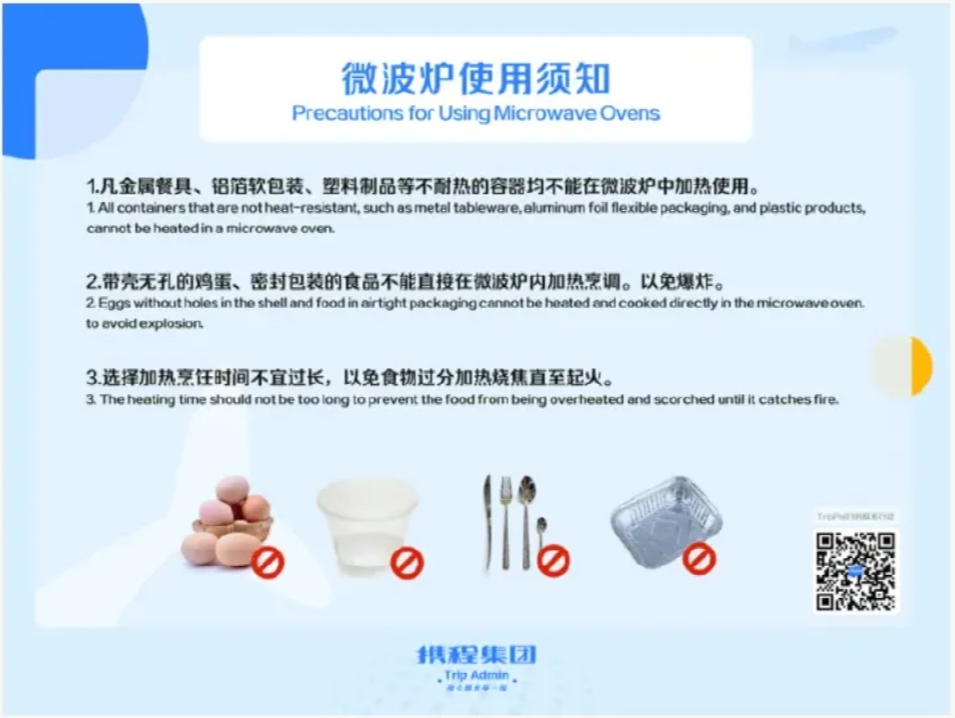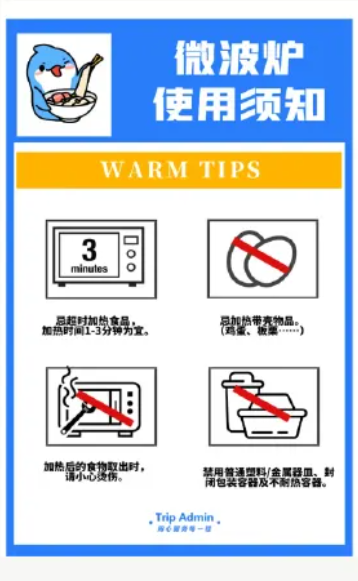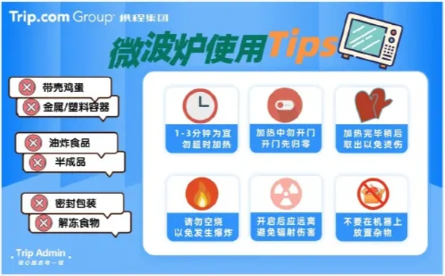 微波炉的使用提示很有必要,因为需要避免员工使用方法有误而导致一些安全事故发生,例如携程集团的微波炉提示,就更多偏向使用教程和安全提示: