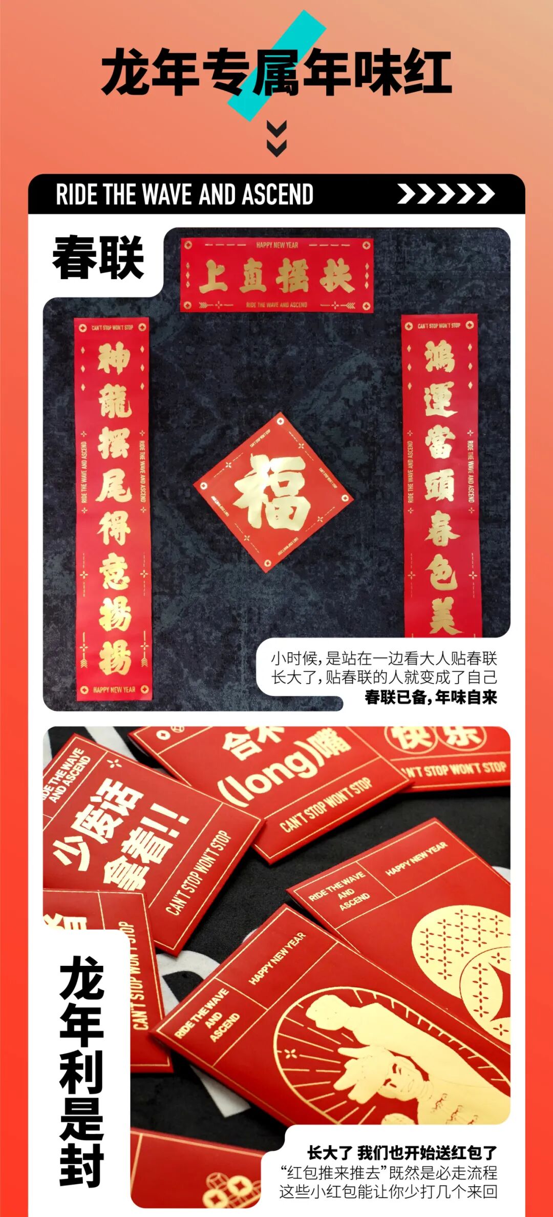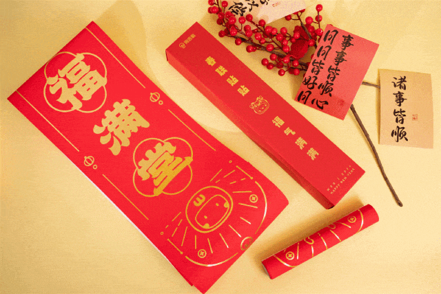 最后,少不了新春必备的红包春联套装,传统书法祝福未来,表达对新年的期盼。