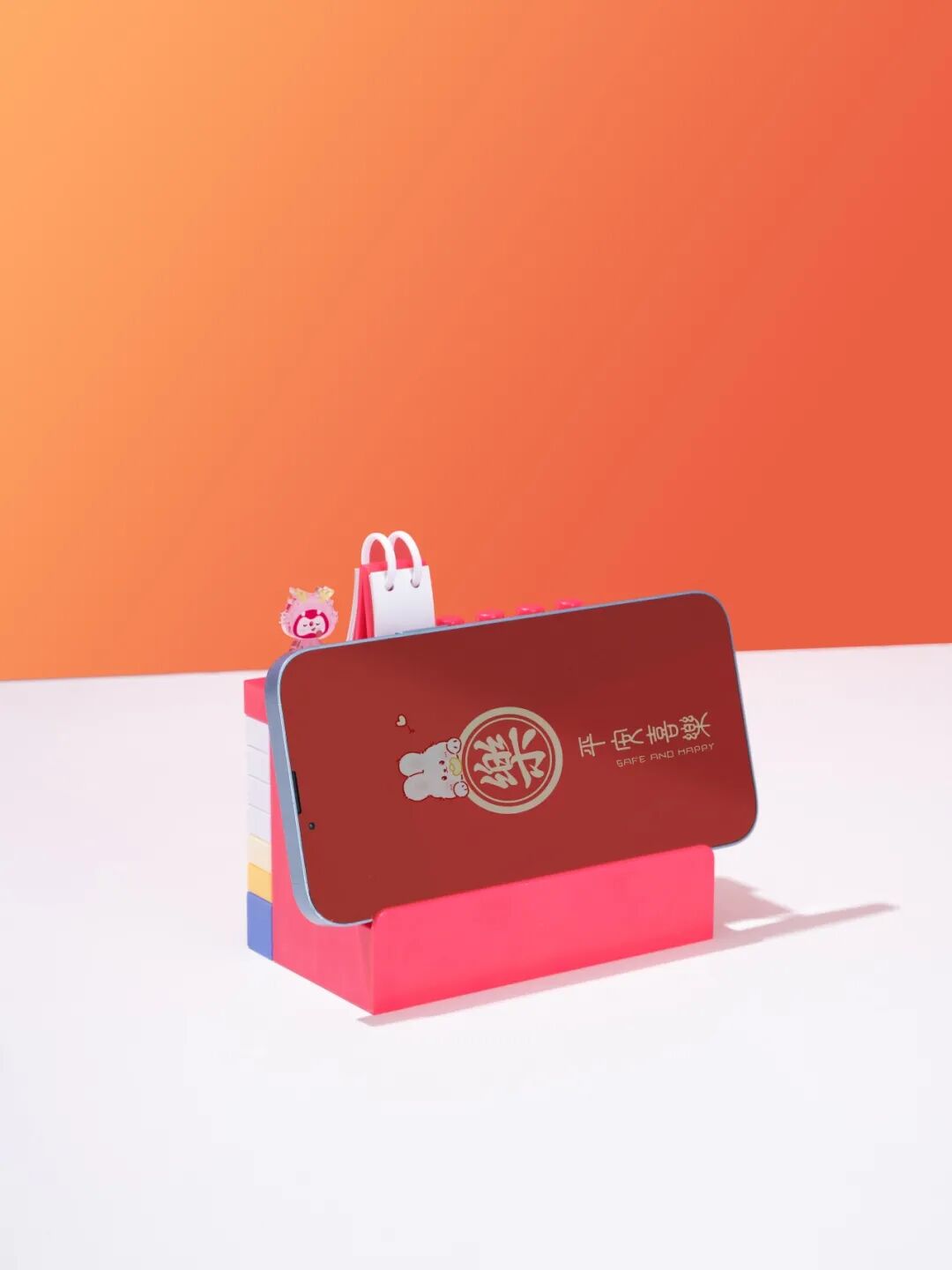 新年台历萌萌的电视机外框也是手机支架。若将台历卡纸全部取出,即可把手机放入框中,台历摇身一变成mini电视。除此之外,顶部还是一个收纳笔筒,桌面上的小物件都能塞里面!还可以自由DIY超萌团团年味贴饰贴在台历上。