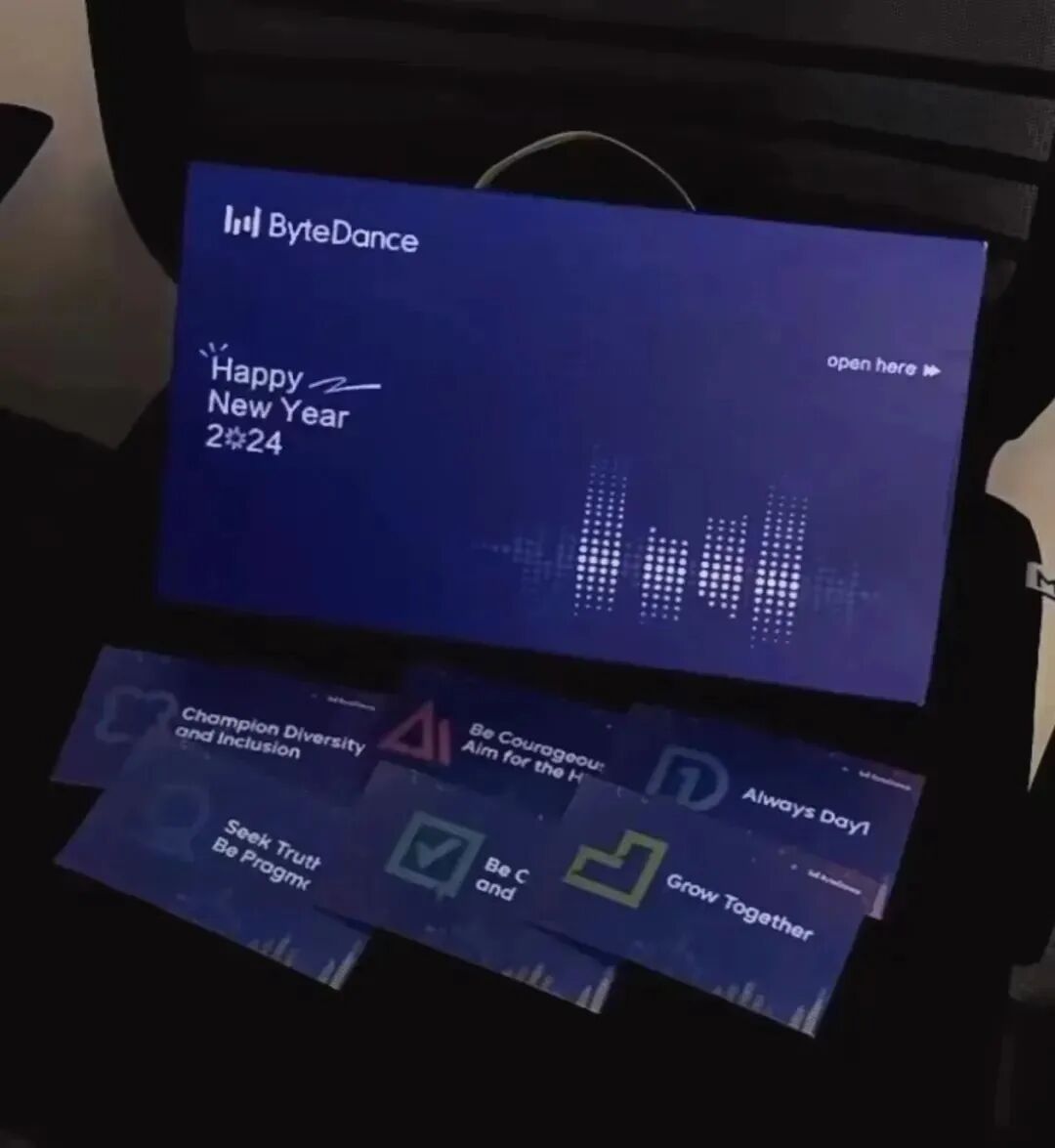 字节2024年的礼盒主题是“TOGETHER WE CREATE RHYTHEM”, 礼盒整体以字节蓝为基础色调,整体简洁大气。