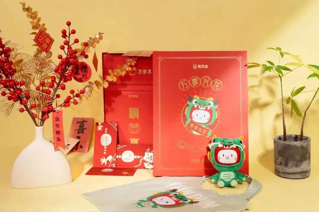 这份“攒”满祝福的新年礼盒内含:用来攒快乐的可爱小红薯龙年手办、用来攒好运的定制风铃、用来攒健康的实用按摩颈枕、当然少不了用来攒财气的新年必备红包,还有特别定制的红包福气贴,用来创作出专属于自己的红包。