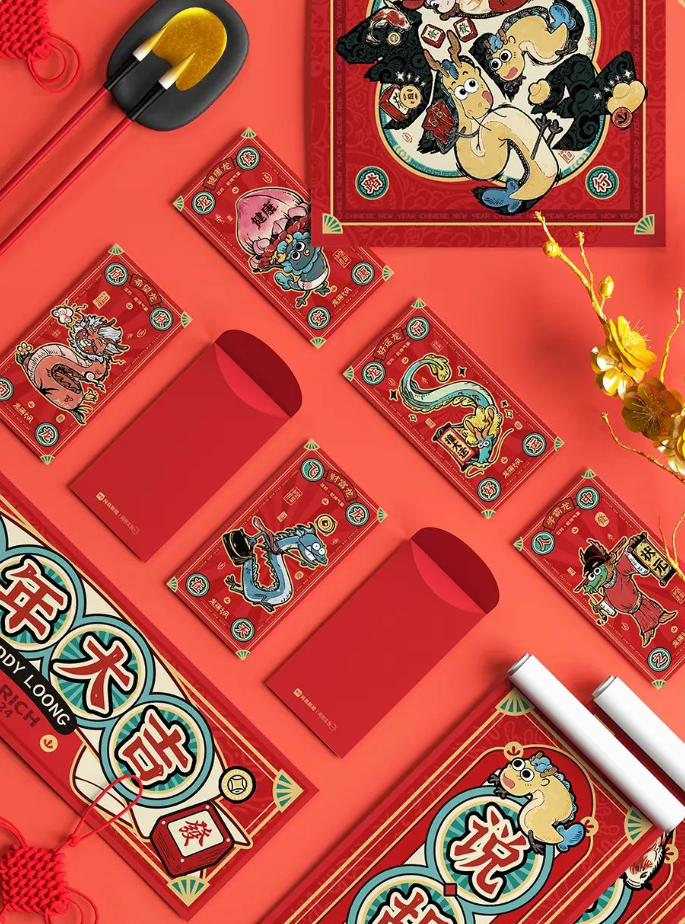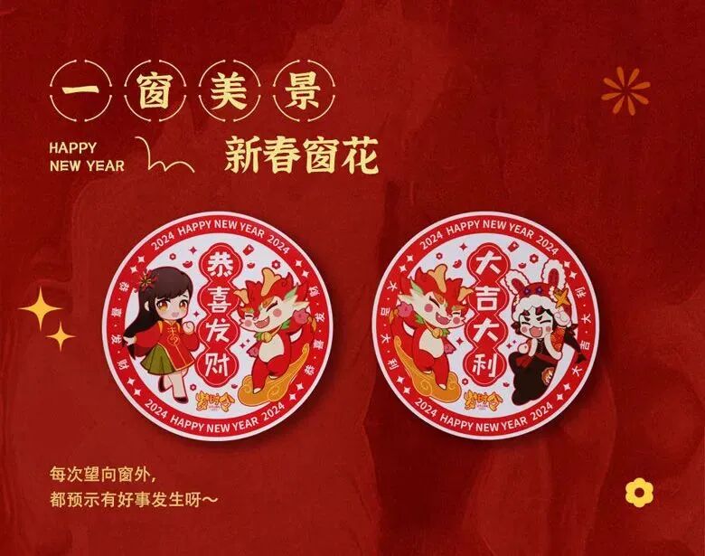 还有氛围组选手:小敦定制春联&窗花&红包&龙年限定贴纸,都为2024添上龙墨重彩的一笔!