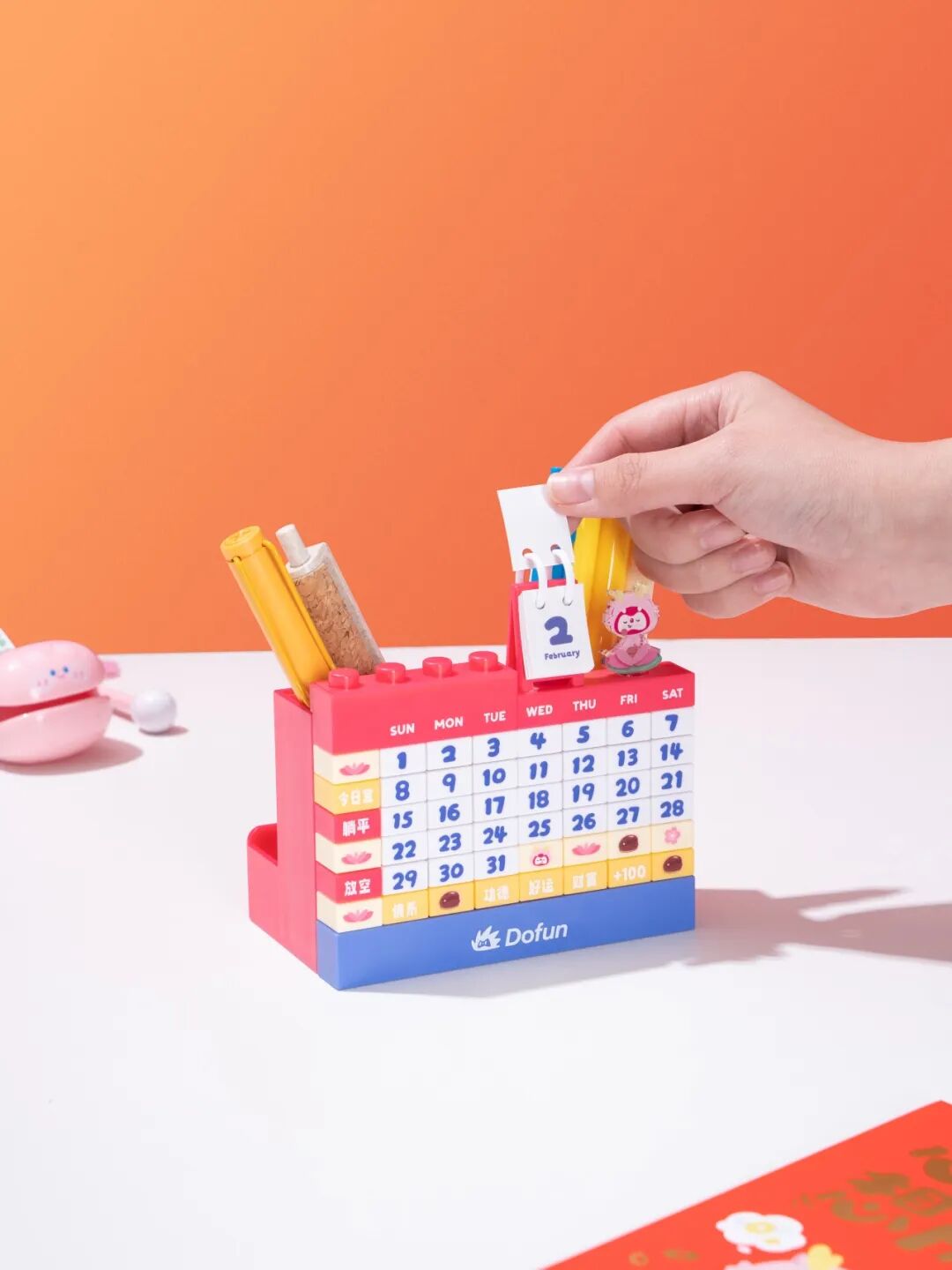 礼盒内含可diy的积木拼接日历,每个月都可以体会一下重装的快乐,还可以作为笔筒和手机支架使用。