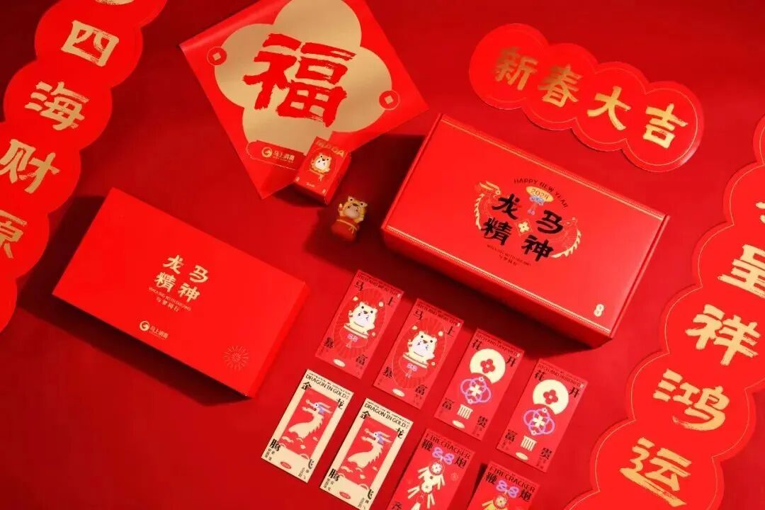 还有马上消费龙年限定手办,可爱极了!当然也有春节必不可少的春联套装和红包,新的一年,“马上”暴富!