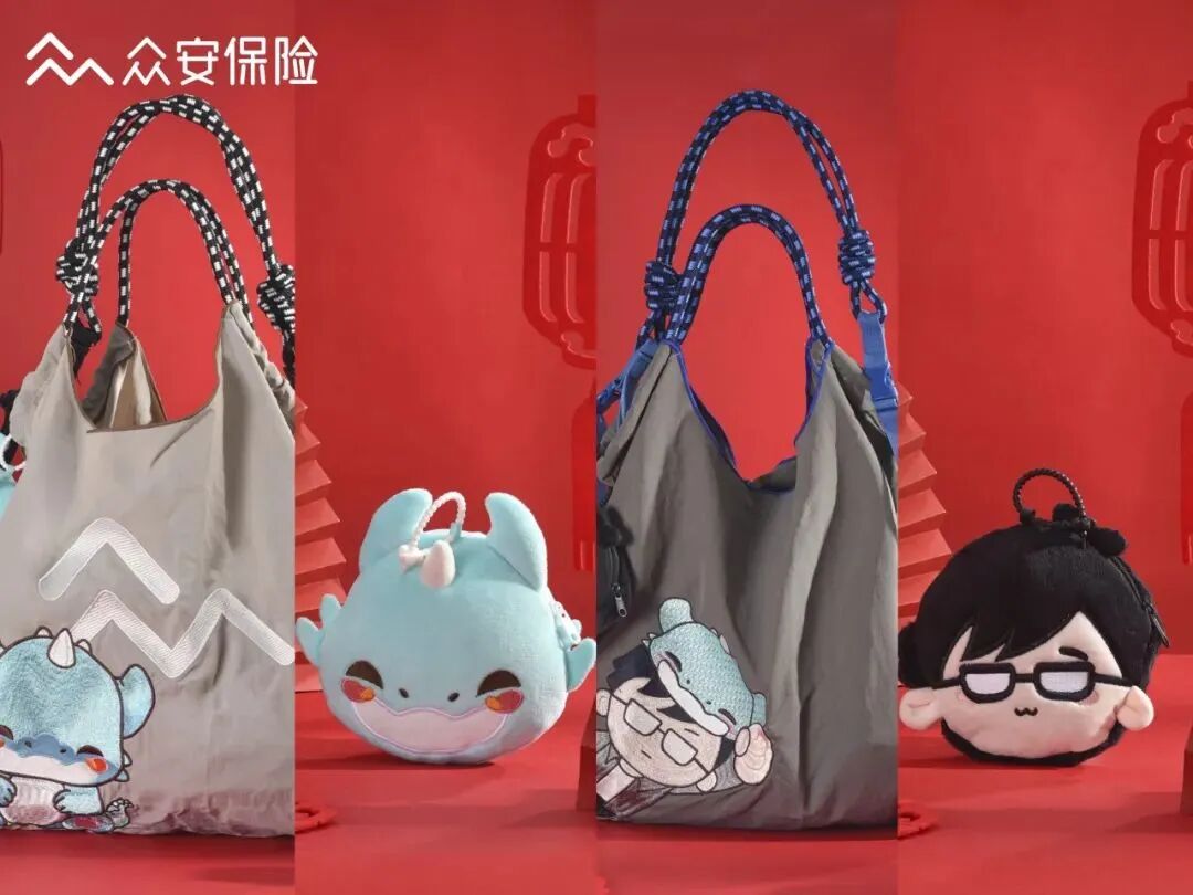 首创以众安logo的毛毡壳造型,打造原创程序员IP阿众与萌龙形象的多用环保包,搭档卡通造型的零钱袋,百搭又实用。