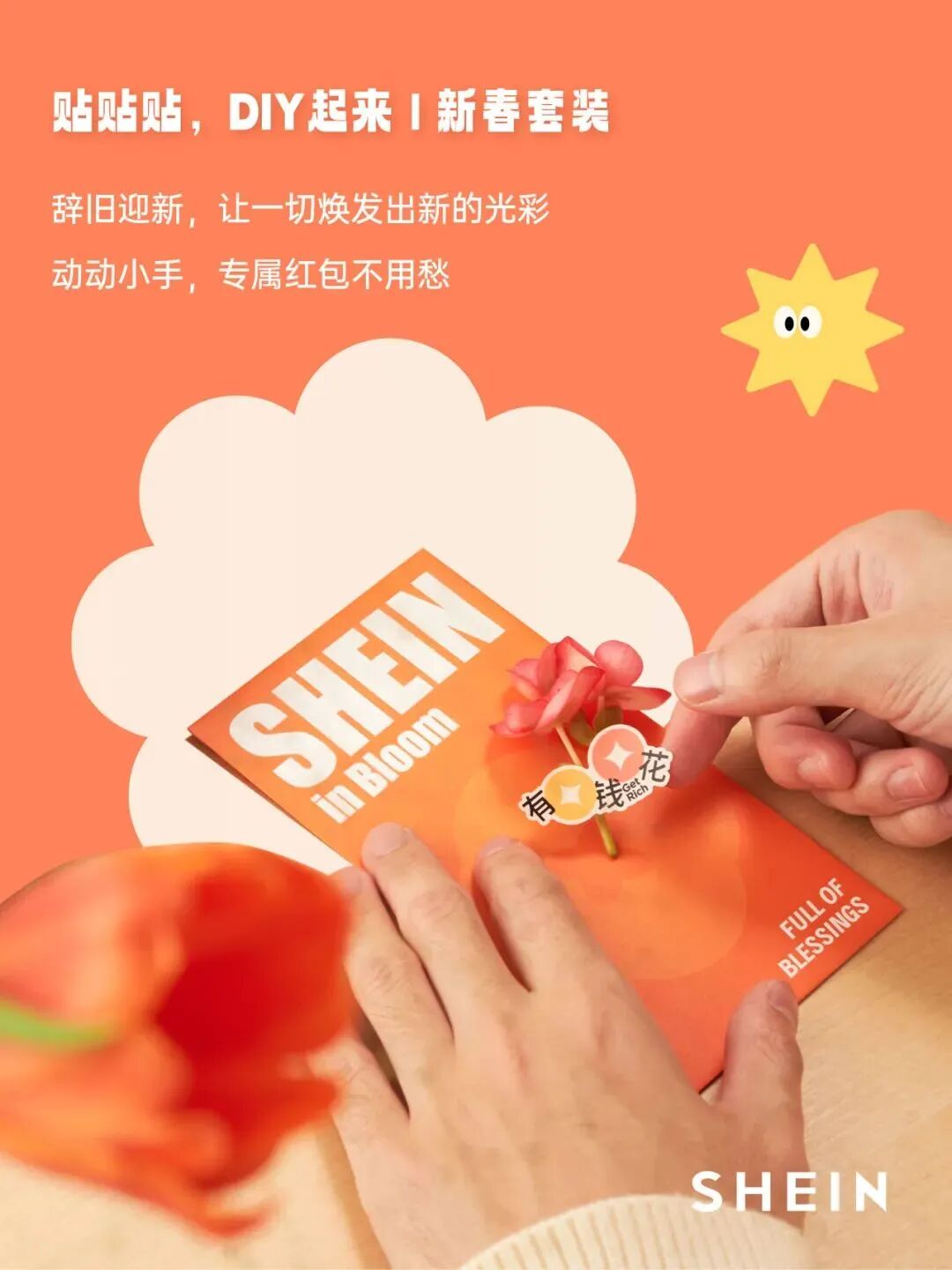 SHEIN新年礼盒主题为“SHEIN IN BLOOM·SHEIN花盛放”,既表示“开花结果”,又表示“SHEIN花争艳”,象征一年到头收获成果的喜悦,也象征新年之始,SHEIN对全新挑战的期待和冲劲。