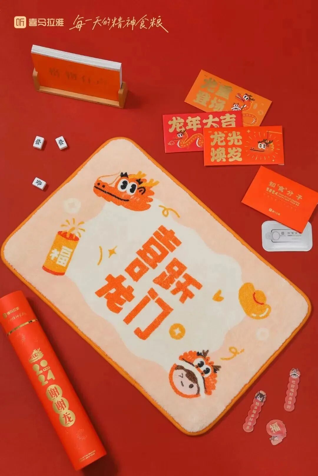喜马拉雅2024年的新年礼盒主题很有意思——谢谢龙。整体配色以红色为主,新年气氛十足,礼盒内的东西也很丰富。