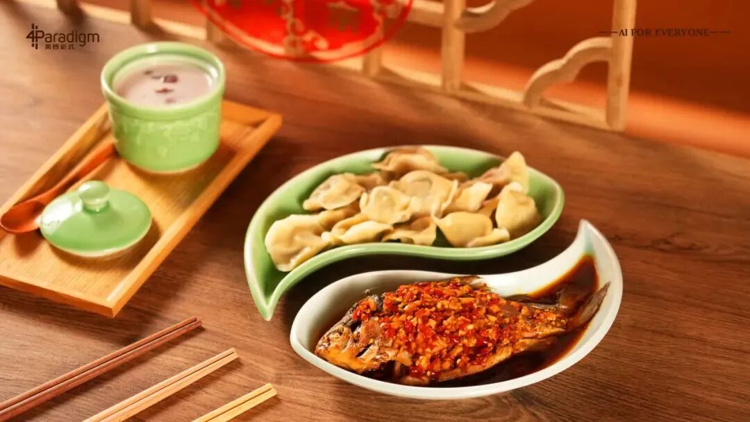 2024年第四范式新春礼盒以表达人们对生活富足美好的愿望的「鱼」为灵感,将主题定为: 年年有鱼,礼盒设计采用一条生动有趣的锦鲤,身着莲花、莲藕、金豌豆,寓意幸福、美好、富足的生活;周围环绕彩色烟花,代表喜迎新年的气氛。
