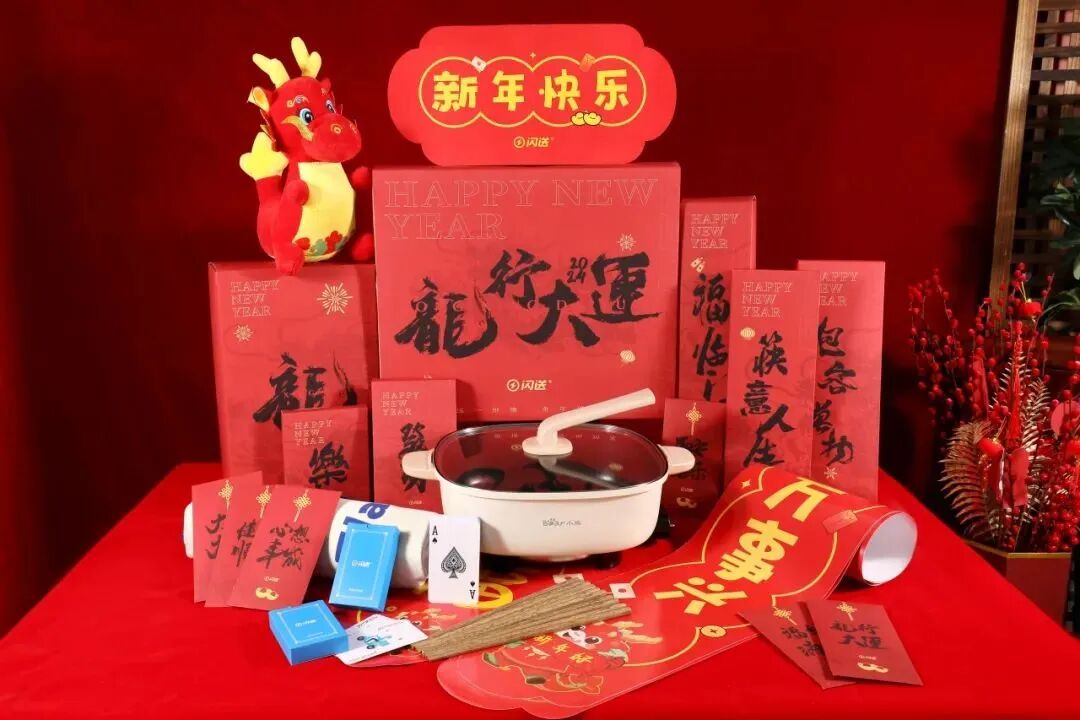 2024,闪送【龙行大运】新年礼盒,龍重登场,礼盒主色调选用了最具有「年味」色彩的红色,添加生肖龙暗纹使今年的礼盒更加霸气。