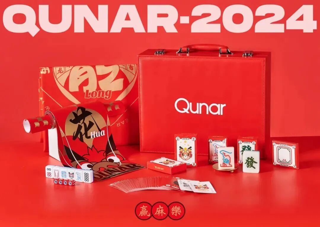 2024,去哪儿旅行以“团聚”、“归家”为灵感,献上“赢麻樂”礼包,红色的礼盒套装将春节气氛值拉满,打开礼盒,映入眼帘的是Qunar满满的祝福。