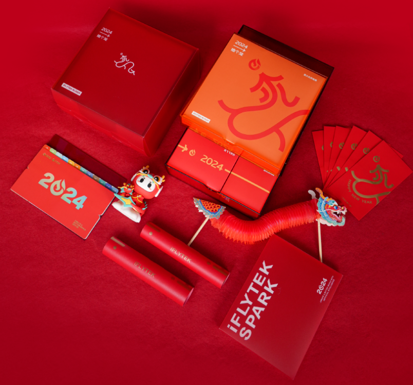 礼盒里有年轻人喜爱的龙飞飞手办、有小朋友喜欢的翻花龙玩具和新春剪纸,同时父辈也可以利用星火生成春联文案,挥笔写下一副专属春联。这个春节,全家一起贴春联、剪窗花、摆龙飞飞、玩翻花龙,喜气洋洋过大年。