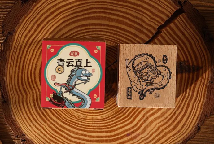 礼盒内还含有一份龙年限定集章月历明信片,就连印章和印泥也是配套出现的,值得一提的是,木质印章共有12种不同的款式,会以盲盒的形式随机出现在礼盒中,充满了惊喜感。