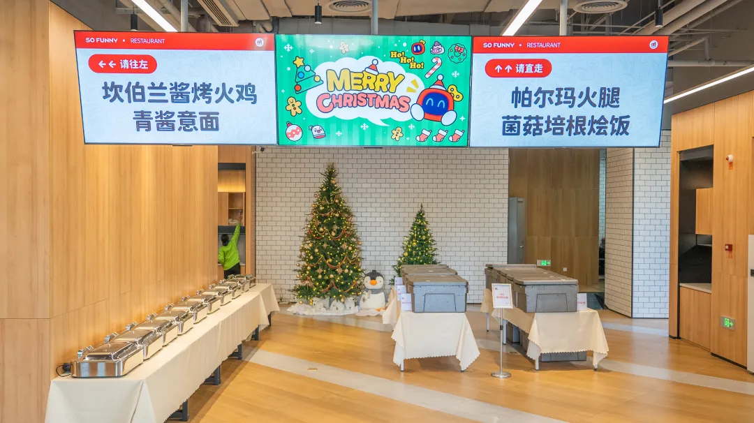 4399就在除夕夜为大家准备了丰盛的年夜饭,火锅主食、披萨甜点、水果饮品……每一道菜品,都蕴含着公司对坚守岗位的小伙伴们满满的祝福。